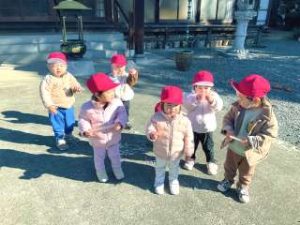 1月 2026.2.20 落ち葉で遊んだよ!フカフカで気持ちいいね♡みんなおままごとに夢中です♪本堂で見つけた氷を触ったよ!砂場遊び楽しいな♪ 一緒におうちを作ったよ!おにの顔をつくったよ☆みんなで氷に触れて遊んだよ♡ 氷鬼が大好きです♡ハサミで上手にピザづくり☆こま上手になりました!! かるた遊びをしたよ!チョコフォンデュの製作おいしそう☆落ち葉のお布団フカフカ~ こま回し大会、みんなよく頑張りました!!氷を見つけたよ!色々あそんでみよう!三輪車みんなで乗るとたのしいね♪鉄棒でこんなこともできるよ! 前の記事 一覧へもどる